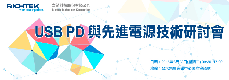 立錡科技為了協助廠商了解及掌握最新的趨勢及技術發展,及協同合作夥伴產生創新的設計,特別舉辦USB PD與先進電源技術研討會,從USB PD技術發展、電源管理沿革及發展。立錡科技最新的AnyVoltTM 及PD SafeTM技術及測量標準將提供更完整及更安全的USB PD技術方案等,結合理論與實務一系列的循序漸進的講座,能使參加的朋友們,在一整日的研討會中,將學習到廣泛及有深度的技術。