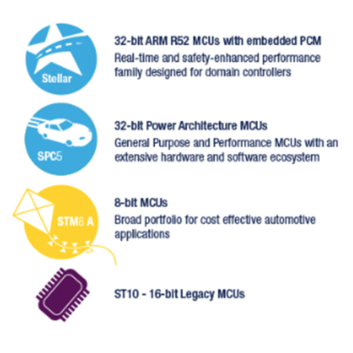 意法半導體各種單核和多核 MCU 產品提供了可擴充的解決方案,得益於硬體和軟體的相容性,可以應付從對成本敏感到十分先進的汽車應用。該產品組合不僅支援最新的汽車轉型領域,例如電動汽車、閘道和 ADAS 應用,而且還為現有應用(如車身、動力總成、底盤與安全)帶來創新。