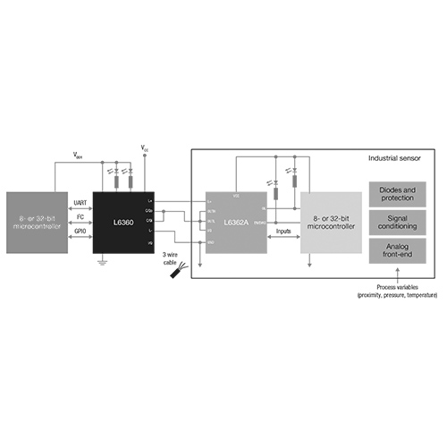 ST 提供包含標準 ISO 9141 相容型接口功能和用於訊號調理的雙向收發器的單片 IC,這些收發器可與 CAN 控制器一起使用,並符合 ISO / DIS 11898 最高1 Mbaud 的要求。