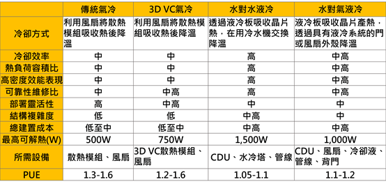 氣冷方案散熱能力差但部署較易 液冷散熱效率更佳但初期成本較高