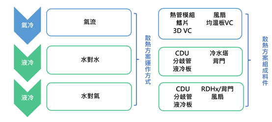 水對氣及水對水液冷散熱方案各擁優勢 短期以水對氣液冷方案機會較佳