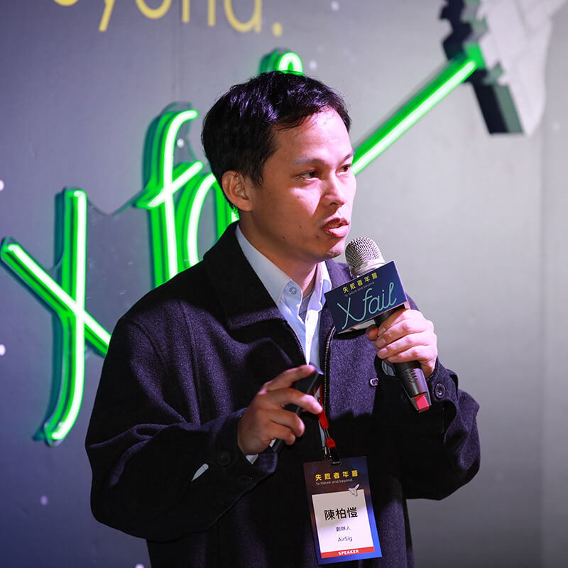 曾經在宏碁擔任過資安工程師,並取得交通大學資工所博士學歷的陳柏愷,2014年7月成立新創公司AirSig,更讓鴻海以僅佔10%股份大筆投資美金2000萬元。在歷經五年後, AirSig少了當年媒體追逐和華麗掌聲,回歸自身原點,陳柏愷於失敗者年會XFail舞台上分享了創業者需要了解的五堂課,並點出對創業者來說,研發技術、開發產品、找到市場三者的相關分析,為與會者們帶來滿滿的收穫。