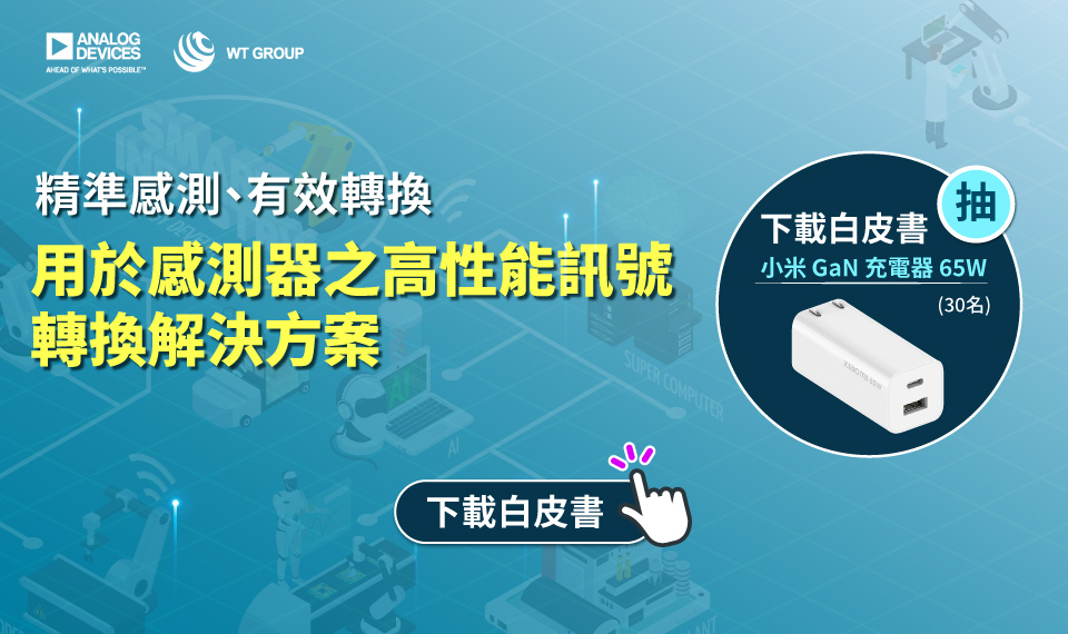 ADI 的全新精密技術訊號鏈套件,協助工程師輕鬆擷取資料、成功轉換訊號。應用廣及智慧工廠、儀器儀表、汽車電氣化到機台健康管理評估,以及精密技術應用。