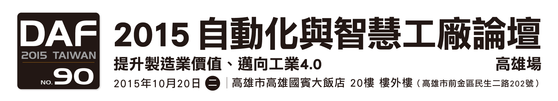 DIGITIMES計畫於今(2015)年10月,分別於台北、台中、高雄三地舉辦「自動化與智慧工廠論壇」活動,本屆活動主題為「提升製造業價值、邁向工業4.0」。議題涵蓋:工業自動化與資訊技術的深度結合、產業機器人應用、智慧工廠規劃與設備自動化、生產管理與監控….等。主辦單位邀約學有專精的科技研發專家、具備工廠自動化實務經驗的產業工作者,以及大同、北爾、台塑網、洛克威爾、新思科技、歐特克、四零四、泓格、英特蒙、淩華、國家儀器、晶睿、圓剛、瀚達、羅姆…等15家解決方案供應商與會,共同參與本次論壇活動。