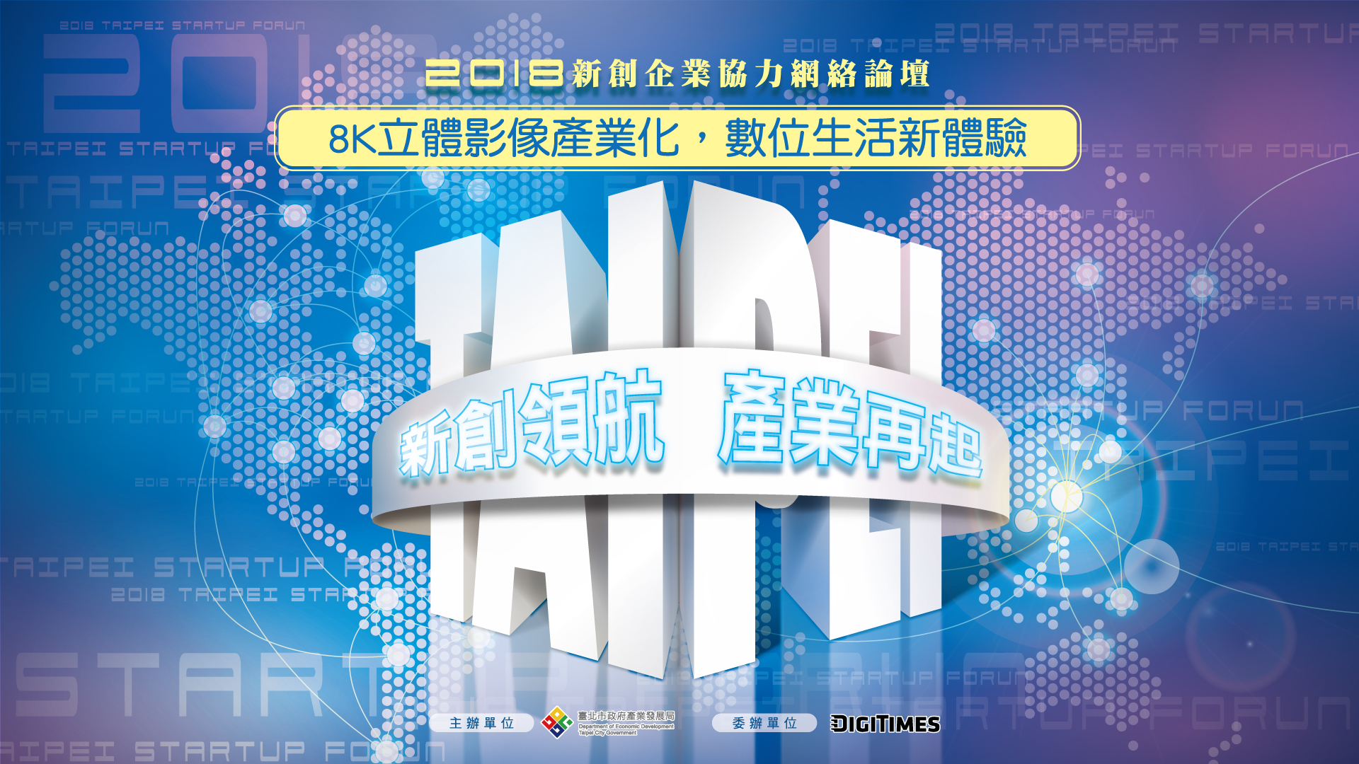 放眼未來及國際產業趨勢,2018年平昌冬奧已針對5G推出示範計畫,即將來臨的2020年東京奧運,以8K影像為主訴求,無論日韓,皆欲搶佔未來眼球經濟的大商機,台北為首善之都,更是東亞科技圈重要的一環,如何以政策引領,在既有產業的基礎上,發展具首都特色的新創/產業共生的生態系,本次論壇將以科技及影音產業最具有前瞻性的議題為主,邀集新創與產業同座交流,以新創的活力,帶動產業再起。