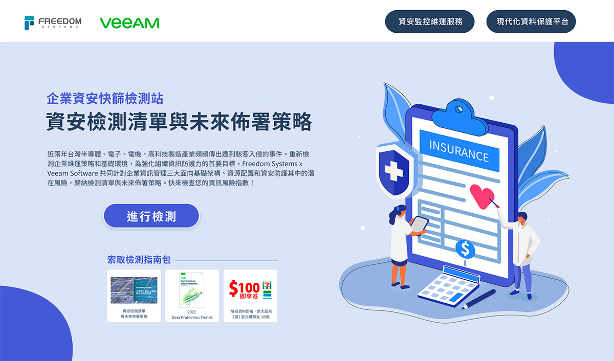 x Veeam Software 共同針對企業資訊管理三大面向基礎架構、資源配置和資安防護其中的潛在風險,歸納檢測清單與未來佈署策略。快來檢查您的資訊風險指數!