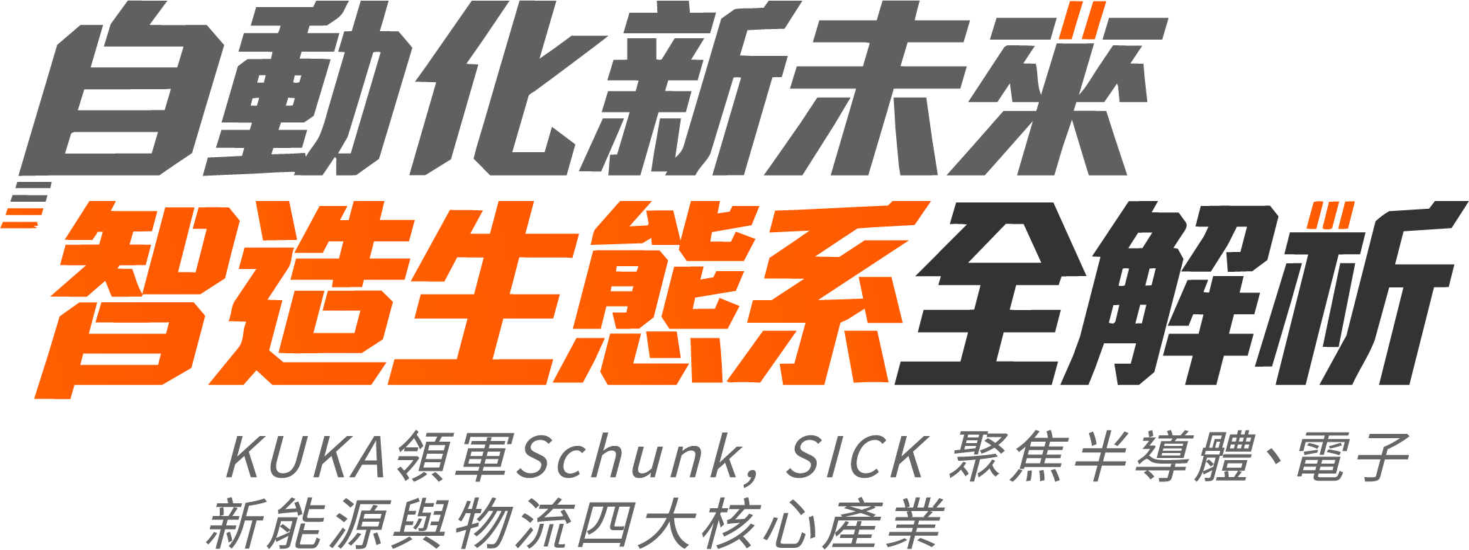 隨著全球產業數位轉型加速,KUKA 領軍 SCHUNK 與 SICK 頂尖夥伴 ,將於 2026 年 5 月 27 日在 WSICC 暐順國際會議中心舉辦「自動化新未來:智造生態系全解析」論壇。