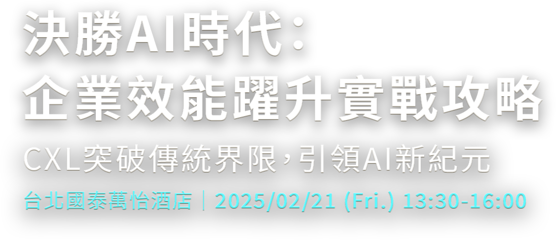 「決勝 AI 時代:企業效能躍升實戰攻略」研討會匯集產業領導廠商經驗,從實務需求出發,分享如何運用 CXL 技術優化基礎架構、提升營運效率,並降低總體持有成本。透過 CXL 技術的創新應用藍圖,協助您在 AI 與高效能運算服務的激烈競爭中搶得先機!