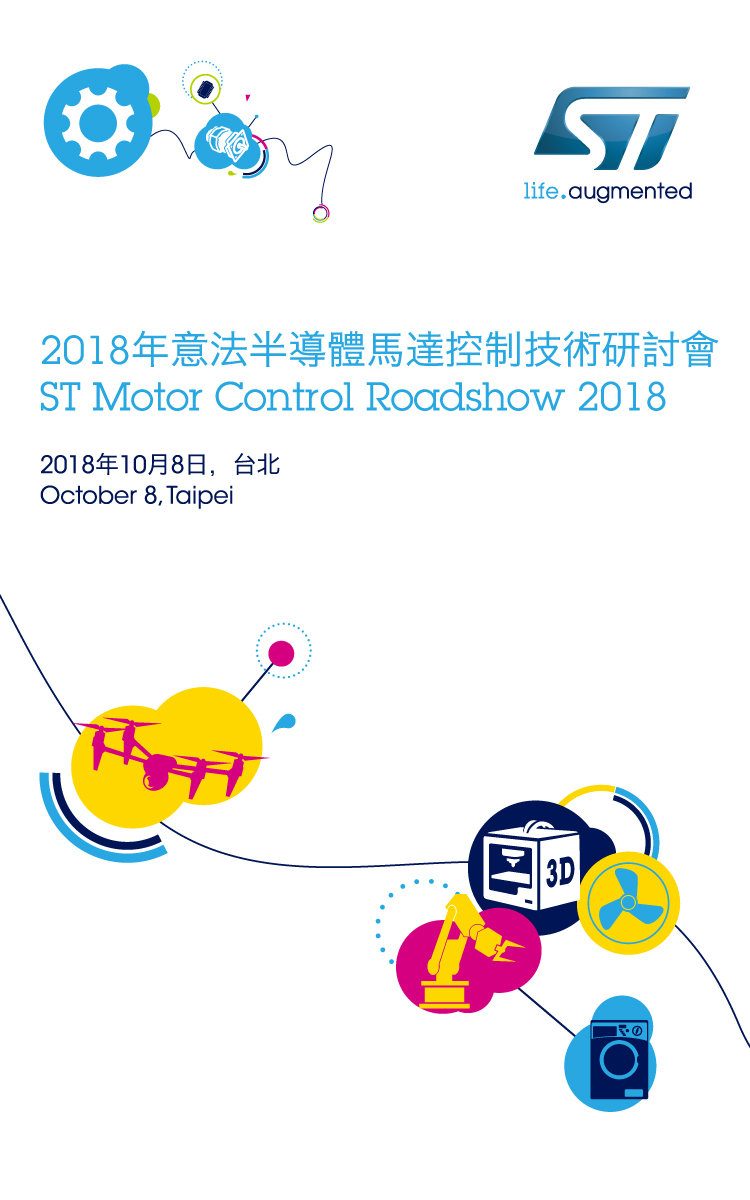 活動中,意法半導體與其經銷合作夥伴特別準備多元的實際產品展示,讓與會者從理論介紹與實務驗證兩方面,深入了解馬達控制最新的技術趨勢,內容精彩可期,切勿錯過。
