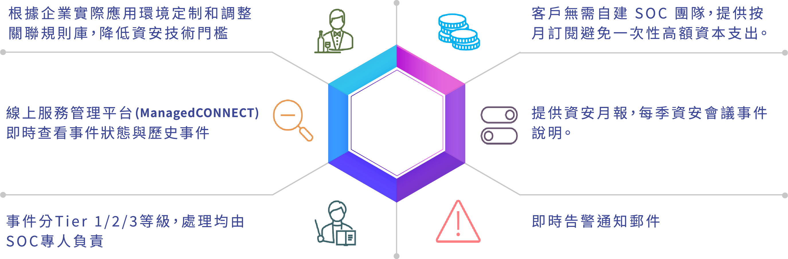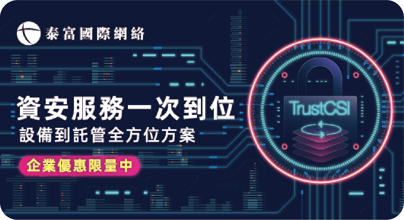 有別於傳統被動資安思維,泰富國際網絡的 TrustCSI™ 資訊安全管理方案,依據MITRE ATT&CK入侵手法,推演企業每個資安威脅,打造全方位主動式資安防禦方案。不僅能從端點、雲端防護、智慧辨識與AI人工智慧的資安防禦,更進一步提供備份備援服務,並搭配資安專家的經驗、歸納總結,適時更新企業最佳資安戰略藍圖,落實公司營運安全守護。