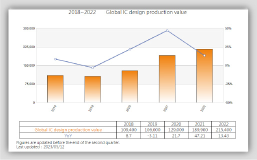 - Total revenue, sub-domains, recent comparisons, highlights, and global proportions of Taiwan's IC design industry