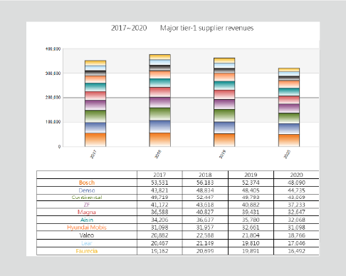 Volkswagen. Detailed revenue data from major suppliers, including Magna and