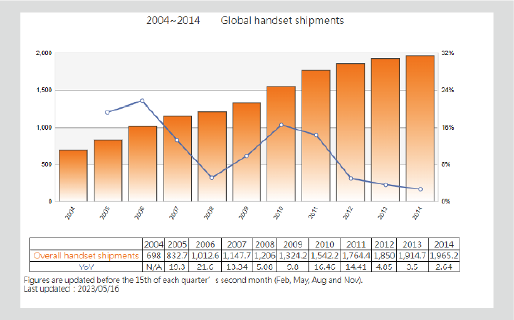 category focuses on global handset shipments and provides data on the