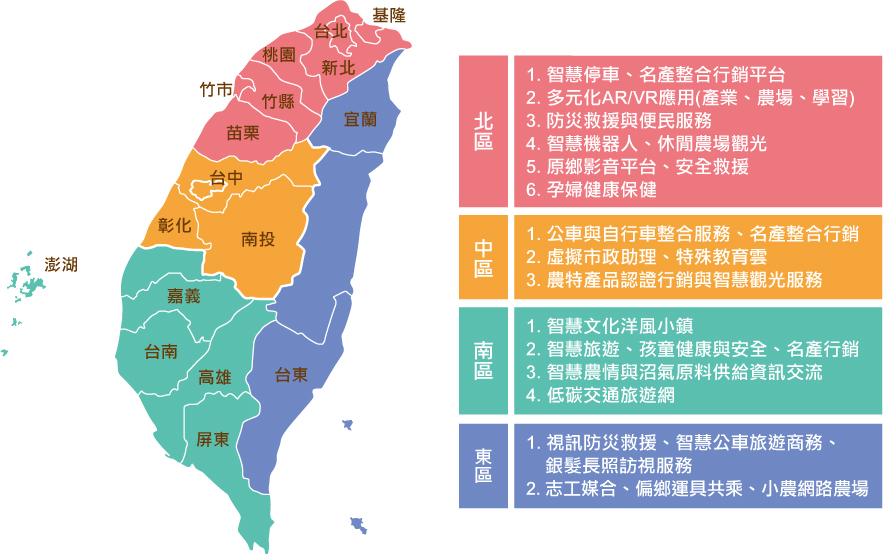 經濟部工業局配合行政院「加速行動寬頻服務及產業發展方案」,推動構建4G智慧寬頻應用城市,運用補助計畫鼓勵國內業者結合地方政府共同投入,本補助機制乃基於地方治理、區域創新之精神,進行創新模式試煉,以地方重點需求或特色為基礎,加強在地企業、在地學研參與,發展地方創新聚落。