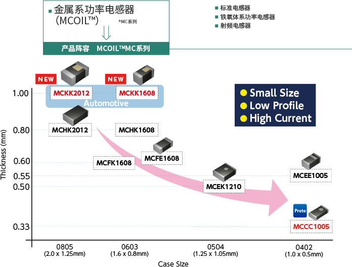 太陽誘電的金屬系功率電感器(MCOIL™)以小型和大電流為特點,其中多層型MC系列更是以超小型,超薄型為特點,被廣泛採用。