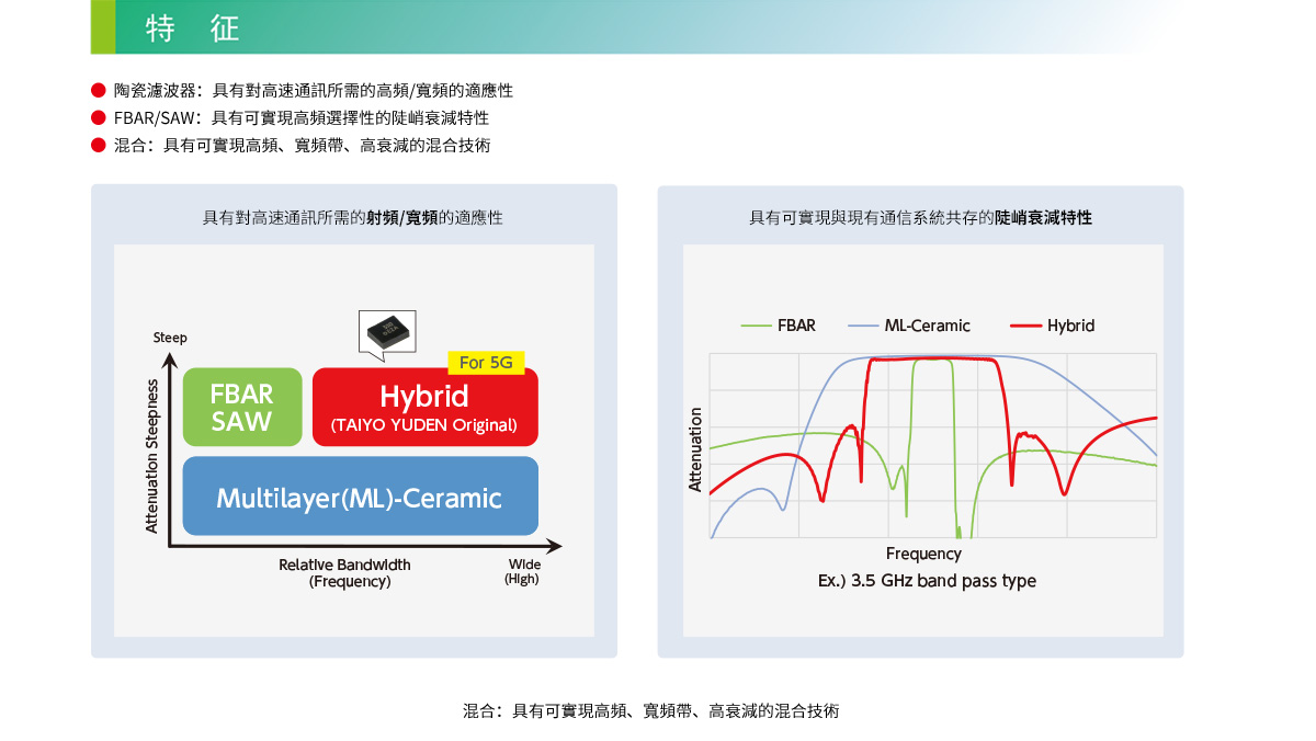 通過FBAR,SAW,陶瓷濾波器,可滿足各種各樣的需求,也能應對高性能化