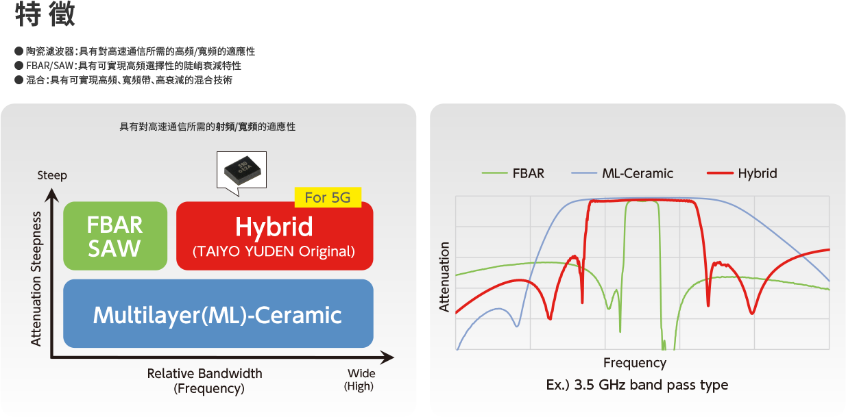 通過FBAR,SAW,陶瓷濾波器,可滿足各種各樣的需求,也能應對高性能化
