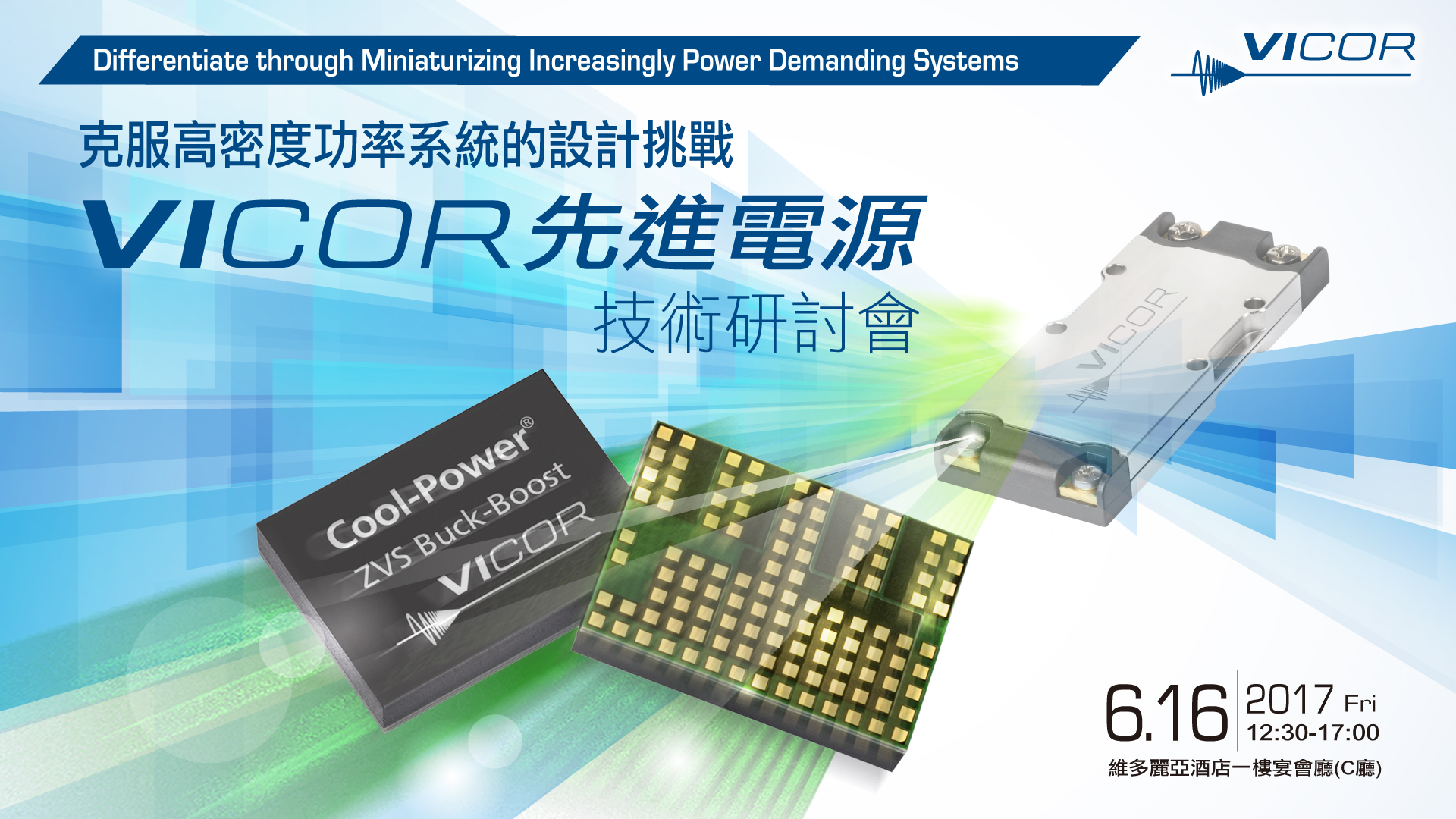 此次研討會,將針對Vicor公司革命性的創新產品有更全面詳盡地介紹,並涵蓋近來的各種熱門議題,包括無人機、工業4.0、伺服器、機器人等應用。除了介紹Vicor的最新產品與技術,並有技術專家現場與您溝通交流,讓您可以掌握最新的電源設計趨勢,期待您的蒞臨及指導。