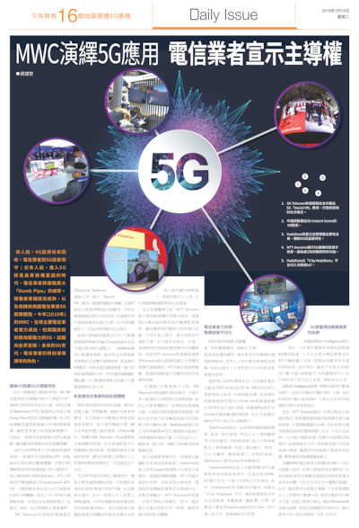 (Daily Issue)MWC演繹5G應用 電信業者宣示主導權