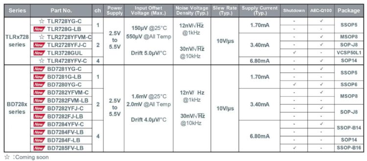 針對市場現況,ROHM推出了可滿足需求的新系列產品—不僅上述特性均表現優異,並且具備適用更廣泛應用領域的通用性。利用新產品後將可在眾多領域達成高精度且穩定的訊號處理。