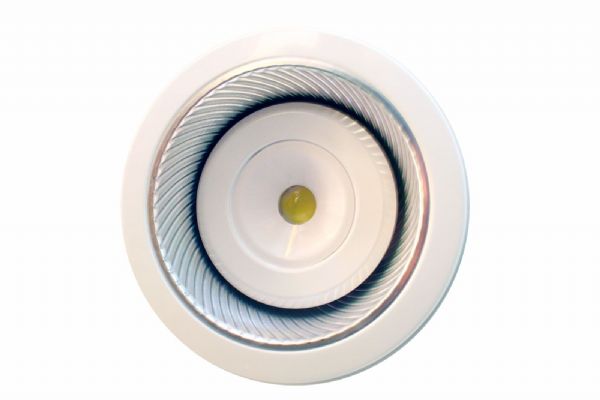 另一種常見的嵌入式燈具,也是LED固態光源積極搶進的產品線,因為嵌入式燈具(嵌燈),常見設計是採用鹵素燈泡為光源,此為高熱、低效率、高成本的無效率光源,但為了基於裝潢美化環境的需求,又是許多室內設計相當常見的應用光源,雖然也有採取螢光燈式的嵌燈設計,但螢光燈式會有體積較大的問題,部分室內環境氣氛營造的光源,並不會使用這類光源。回到LED固態光源取代這類室內嵌燈的設計應用方面,與燈泡型LED固態光源一樣,嵌燈的構型設計挑戰更嚴苛,因為嵌燈多數需求為柔和光線,點狀光源的LED發光方式,必須利用光學透鏡去改善光源特性,此會造成體積上的增加,雖然有些產品採取利用封裝技術去改善光型,但大體上能修整光線型態的程度有限。