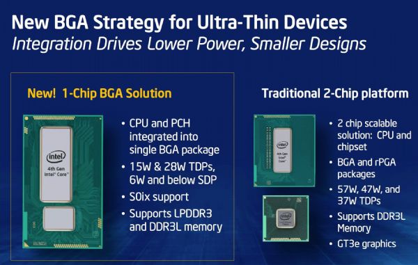 筆電Haswell處理器部份,設計功耗11.5?47W,Core i7-4950HQ(2.4/3.6GHz)、4850HQ(2.3/3.5GHz)與i7-4750HQ(2/3.2GHz)全系列採四核八緒、6MB L3與搭配Intel Iris Pro Graphics 5200(GT3e)設計;i7-4702HQ/4700HQ/4900MQ/4800MQ/4702MQ/4700MQ採四核八緒、2.2~2.8GHz/3.2~3.8GHz且搭配Intel HD Graphics 4600(GT2)的設計;Core i5-4650U/4558U/4550U/4500U則為兩核四緒、4MB L3且搭配Intel HD Graphics 5000/Iris 5100/HD 5000/HD 4400 GPU;Core i5-4350U/4288U/4258U/4250U/4200Y/4200U為兩核四緒、3MB L3、時脈1.3~2.6GHz/2.6~3.1GHz且搭配HD5000/Iris5100/Iris5100/HD5000/HD4200/HD4400 GPU的設計;Core i3-4158U/4100U/4010Y/4101U為兩核兩緒、3MB L3、時脈1.3~2GHz且搭配Intel Iris5100/HD4400/HD4200/HD4400 GPU的設計。