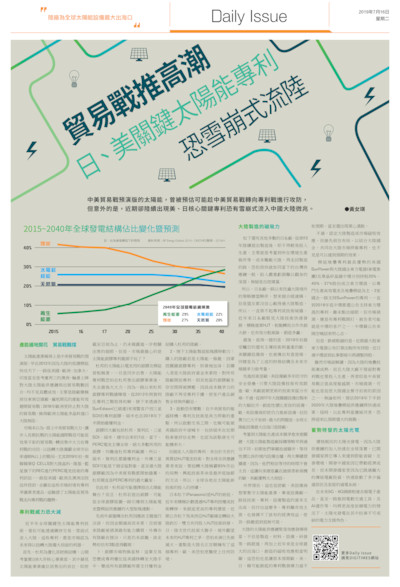 (Daily Issue)貿易戰推高潮 日、美關鍵太陽能專利恐雪崩式流陸