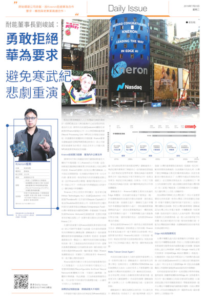 (Daily Issue)耐能董事長劉峻誠:勇敢拒絕華為要求 避免寒武紀悲劇重演