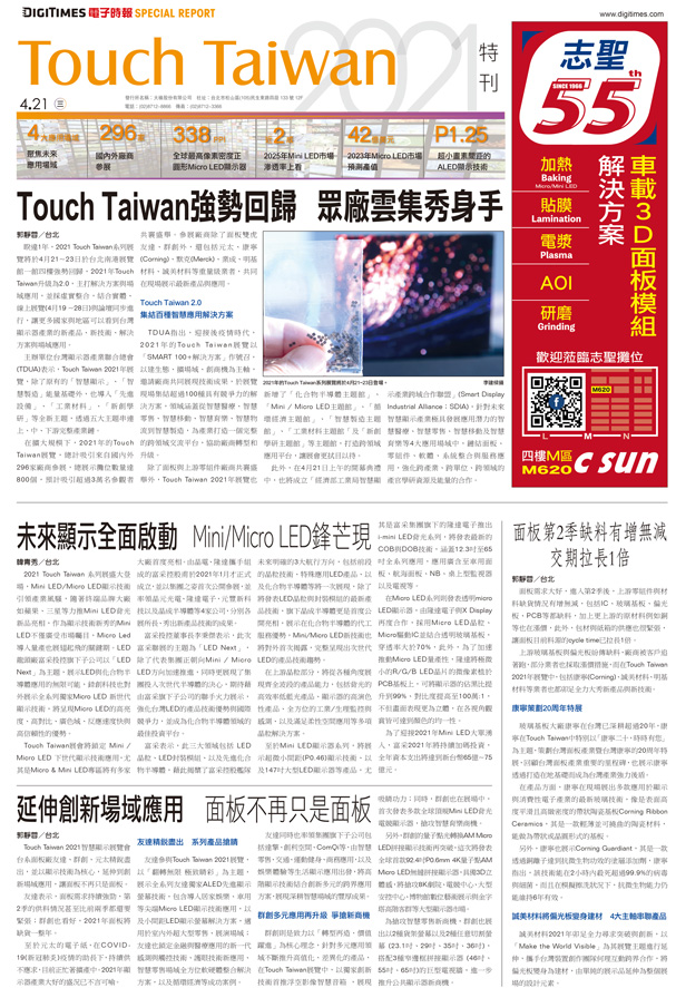 Touch Taiwan智慧顯示展,G2C+聯盟廠商志聖工業、均豪精密、均華精密共同展出(2021/04/21)